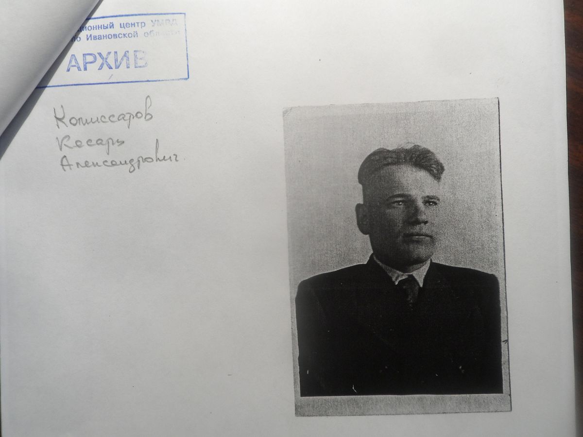 Кесарь Александрович родился в 1925 году в деревне Маклаково Нерехтского района Костромской области. Окончил 7 классов. В 1943 году поступил в дивизионную школу младших специалистов и через четыре месяца был направлен на Ленинградский фронт. После Победы он продолжил служить в армии до декабря 1950 года. Вернувшись в Фурманов, К.А. Комиссаров уже через несколько дней был принят на службу в милицию на должность инспектора детской комнаты.